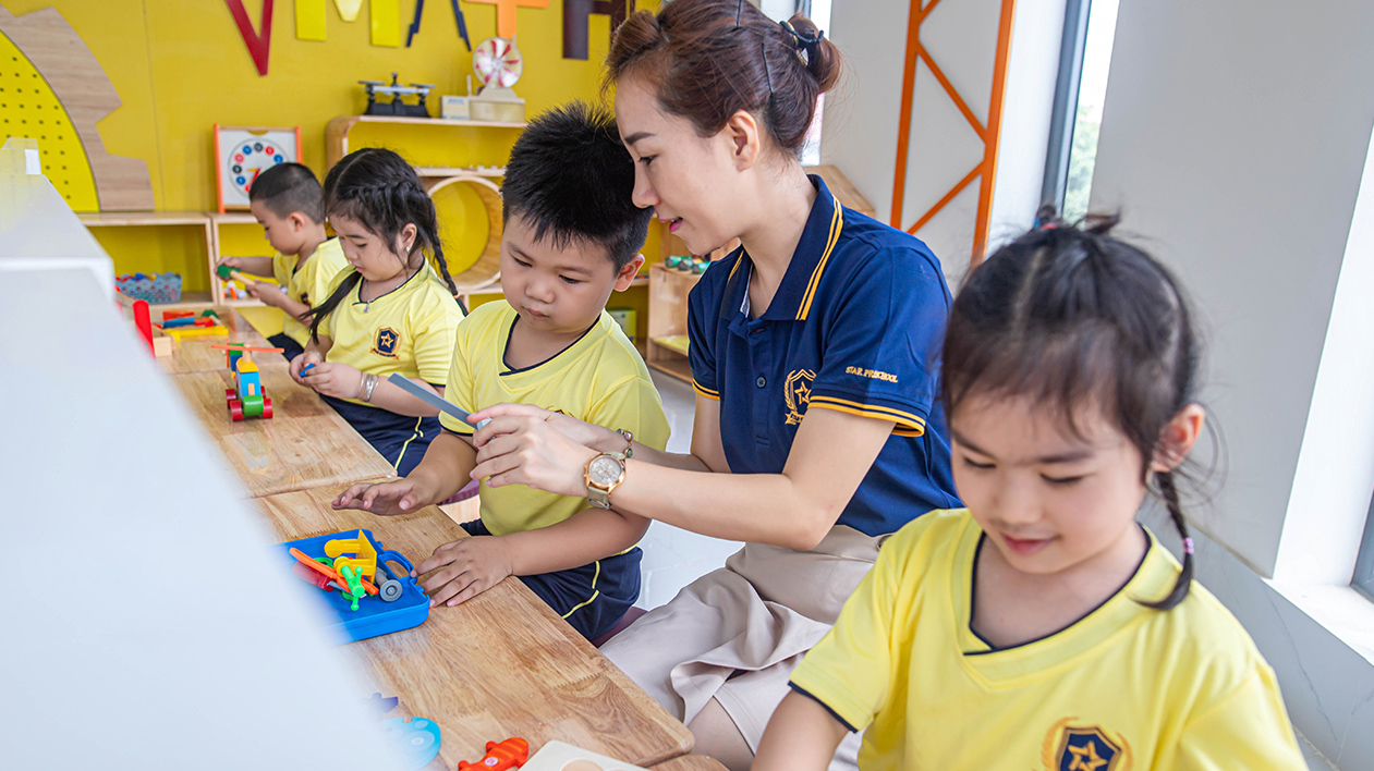 Tại Trường MẦM NON NGÔI SAO (STAR PRESCHOOL), trẻ sẽ được phát triển hoàn hảo về các mặt để trở nên ham học, biết cách học và biết cư xử. Các em chẳng những được trang bị vốn hiểu biết và kỹ năng sống để bước vào lớp MỘT, bậc tiểu học ở các trường quốc gia lẫn quốc tế một cách thoải mái, tự tin, mà còn tiếp tục vững vàng phát triển ở các bậc học tiếp theo và trọn đời.